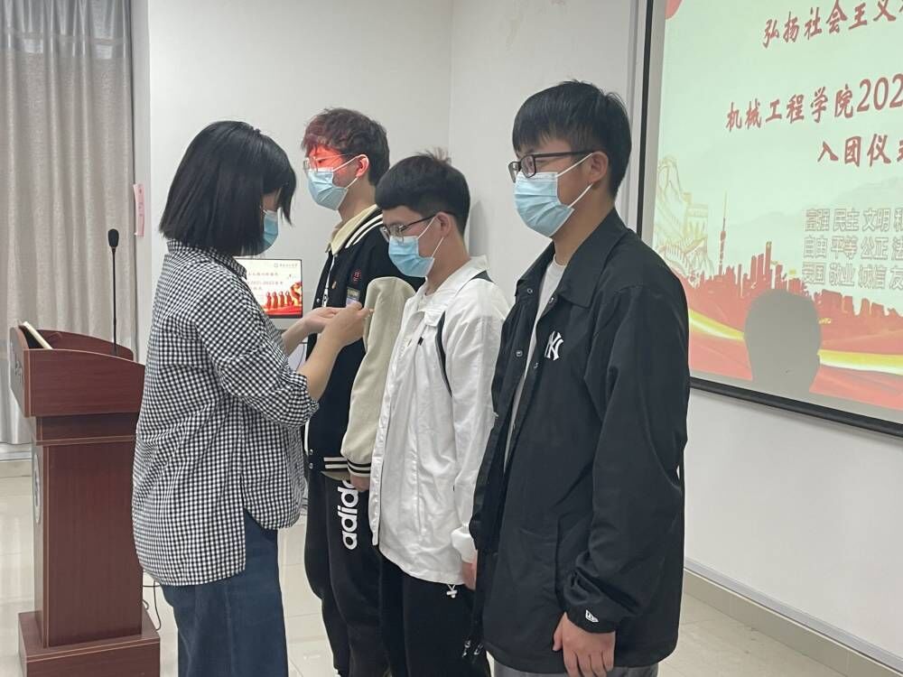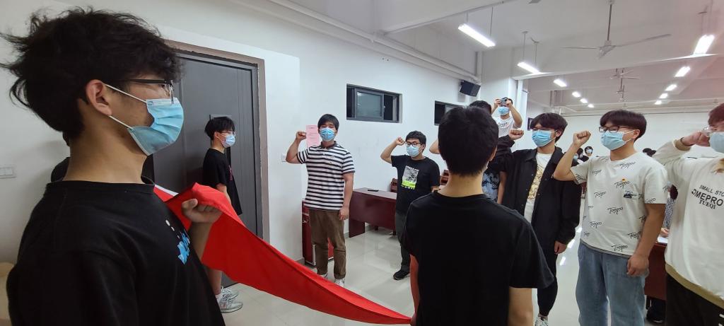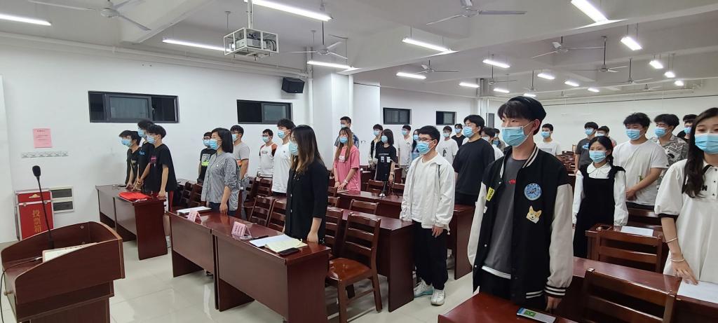 在张政老师的带领下,线上线下新老团员佩戴团徽,面向团旗庄严宣誓,他们用铮铮誓言表达青年之心,践行青年担当。从此以后,他们将时刻牢记团员身份,以团员的标准严格要求自己,肩负起作为一名共青团员光荣而艰巨的责任,加倍努力学习,以知识武装自己的头脑,用实际行动践行自己的入团誓言,争做一名合格的、优秀的共青团员!