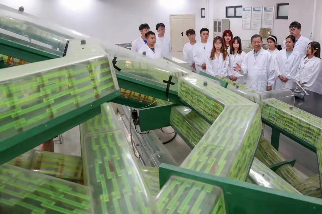 袁亮院士在矿井通风仿真实验室指导本科生测定通风管道风流点压力和风速。