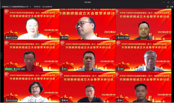 6月19日,教育部工程材料与机械制造基础(金工)课程群虚拟教研室安徽教研组成立大会暨学术研讨会通过线上会议形式举行,来自省内各高校的教研组成员以及行业代表40余人参加了会议。会议由教育部高等学校工程训练教学指导委员会副主任委员、合肥工业大学教授朱华炳主持。我校机械工程学院机械制造系主任孙伦业副教授参加会议。