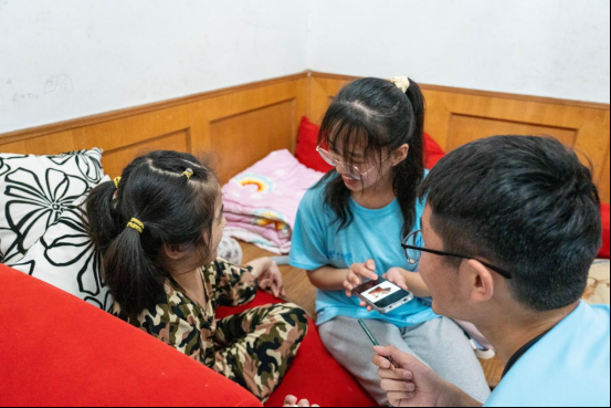 在宿州市特殊教育中心,队员们第一次近距离接触“折翼天使“。他们或是天生盲疾但考取乐器最高等级,可轻松演绎高难度曲目;或是手脚不便,但声音灵动,想做赞美生活的歌者;或是无法言语,但天赋异禀,能屡获发明大赛的奖项……在这里,队员们试着将外边的精彩世界展现给小朋友们,激发他们对生活的期盼,也着手帮助他们解决在学习、生活中的烦恼。此外,因中重度残疾适龄儿童因自身和家庭原因不能走进课堂,队员们跟随宿州市特教中心开展了“送教上门”活动。队员们温柔地和肌无力小朋友谈心,帮助他们握笔书写,陪着他们做康复训练。有的小朋友拿笔都艰难,但队员们托着她的手一笔一划、一遍又一遍写着,终于成功写出了自己的名字。