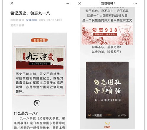学院公众号“安理机械”制作专题推文,引导师生铭记历史,勿忘国耻,勇立时代潮头,担起历史重任。