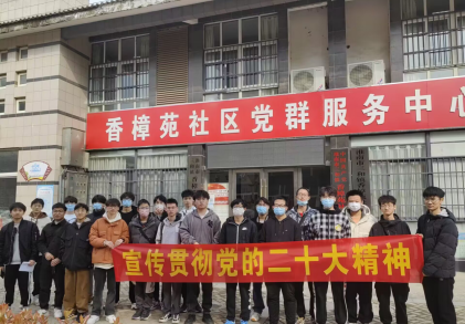 机械设计制造及其自动化2022-6班团支部走进香樟苑社区开展“学雷锋精神,宣传二十大”主题志愿活动。同学们热情高涨,积极向每一位路过居民宣传党的二十大精神,以实际行动践行雷锋精神。