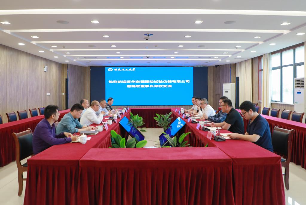 学校科研部、机械工程学院、新能源与智能网联汽车学院负责人,苏州东菱振动试验仪器有限公司总经理助理、销售部经理、投资发展部项目经理,苏州长菱测试技术有限公司总经理、副总经理等参加座谈交流。