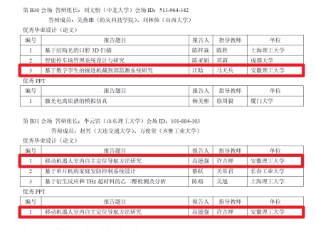 经答辩组推荐,程序委员会审议,共评选出242篇优秀毕业设计(论文),81篇优秀PPT。机械工程学院2019级学生高德强同学汇报的《移动机器人室内自主定位导航方法研究》(指导老师:许吉禅)获优秀毕业设计和优秀PPT奖,2019级学生汪晗同学汇报的《基于数字孪生的掘进机截割部监测系统研究》(指导老师:马天兵)获得优秀毕业设计奖。