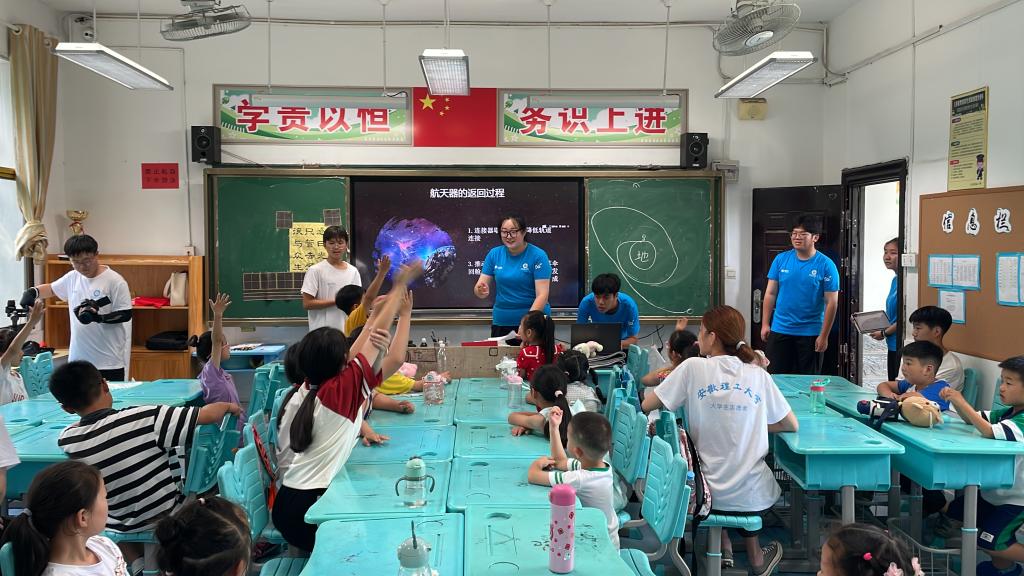 教育关爱,筑梦远航。在茂林镇小学,队员们结合自己的专业特长为孩子们带来航天知识科普小课堂。他们将航天动画和航天新闻植入课堂,讲述中国航天日、中国航天英雄等知识,传播中国航天人勇敢坚韧的奉献精神。他们还将火箭模型和航天模拟器带到现场,以边看、边讲、边问、边学的方式引起孩子们浓烈的兴趣,积极参与交流互动。不长的时间却让一颗颗梦想在孩子们心中发芽:宇航员、飞行员、老师、医生......小小的孩子心中有大大的梦想。重视教育振兴,实现巩固拓展教育脱贫攻坚成果同乡村振兴有效衔接,努力办好高质量教育,为乡村振兴赋能增效。