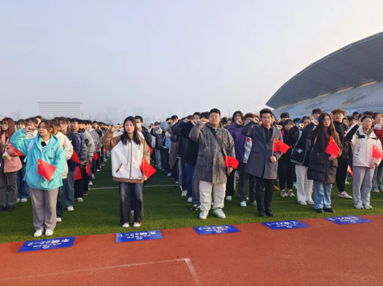 3月26日清晨,机电工程学院升国旗活动在至诚体育场举行。校党委常委、副校长董雨出席活动并讲授思政课。机电工程学院党政领导班子,全体学工干部,教师代表以及学院2022级、2023级全体本科生近2000人参加活动。
