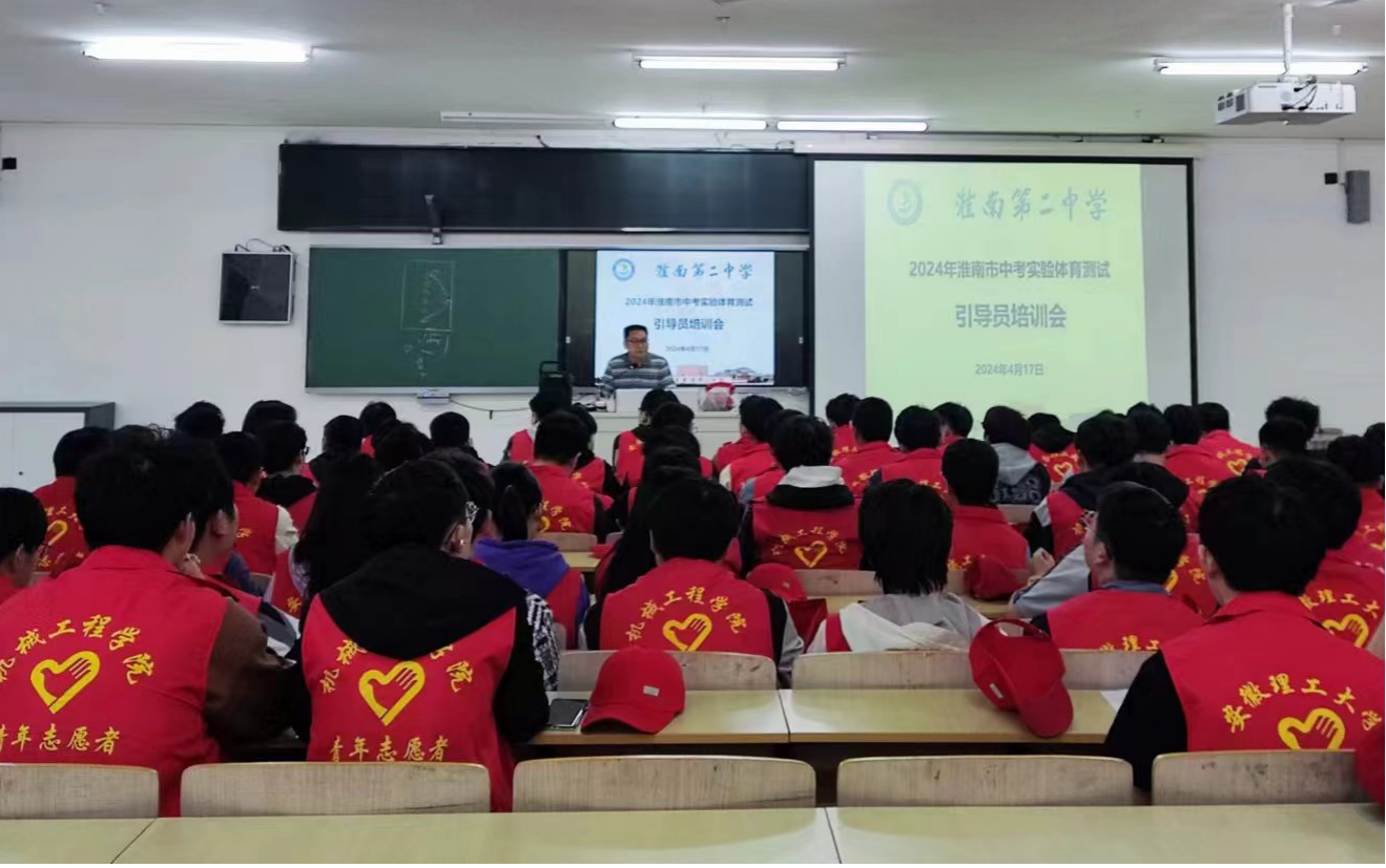 4月17日至4月22日,淮南市中考体育、实验加试在淮南市第二中学举行。为保障考试顺利进行,安徽理工大学机电工程学院抽调104名大学生志愿者,全程参加考点服务,倾心助力组考工作,他们身披红马甲,奔波于操场、实验室各处,成为淮南二中考点最靓丽的风景。