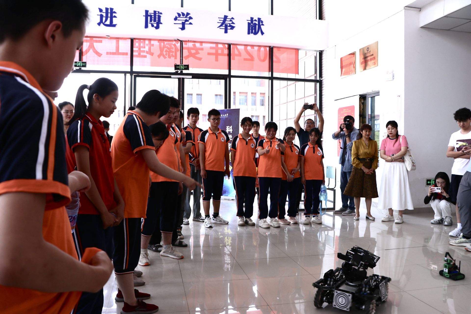 在机电工程学院科技作品展览区,当看到一个个探测车,仿生机器人,机械臂等,孩子们掩盖不住心底的好奇和欣喜。志愿者代表首先带领孩子们参观各种机械设备,并用通俗易懂的语言辅助手势详细为他们讲解作品的名称及用途,蕴含其中的机械原理,耐心解答他们充满想象力的问题。随后,志愿者带着孩子们一起操作演示,让他们在动手实践中感受操控、体验智造。