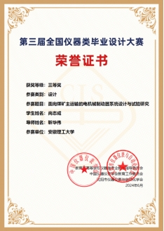 机电工程学院推选出的4份毕业设计作品参赛,在与全国20个省份132所高校567支参赛队伍的激烈竞赛中,王伟安同学的毕业设计《两自由度斜对角梁式压电振动俘能器性能研究》(指导教师:马天兵)获得全国二等奖,尚志成同学的毕业设计《面向煤矿主运输的电机械制动器系统设计与试验研究》(指导教师:靳华伟)获得全国三等奖。