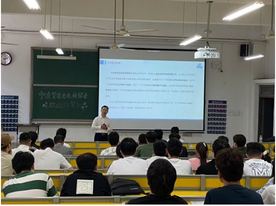 宣讲会上,安徽理工大学校友、翌波光电公司李元胜通过播放视频、PPT展示等方式,从企业文化、企业核心价值观、企业岗位需求及用人标准、企业人才储备及人才培养等方面开展详细宣讲,帮助同学们确定未来职业生涯规划,并以丰富的案例、幽默的语言、良好的互动向同学们展示了企业的魅力与实力。