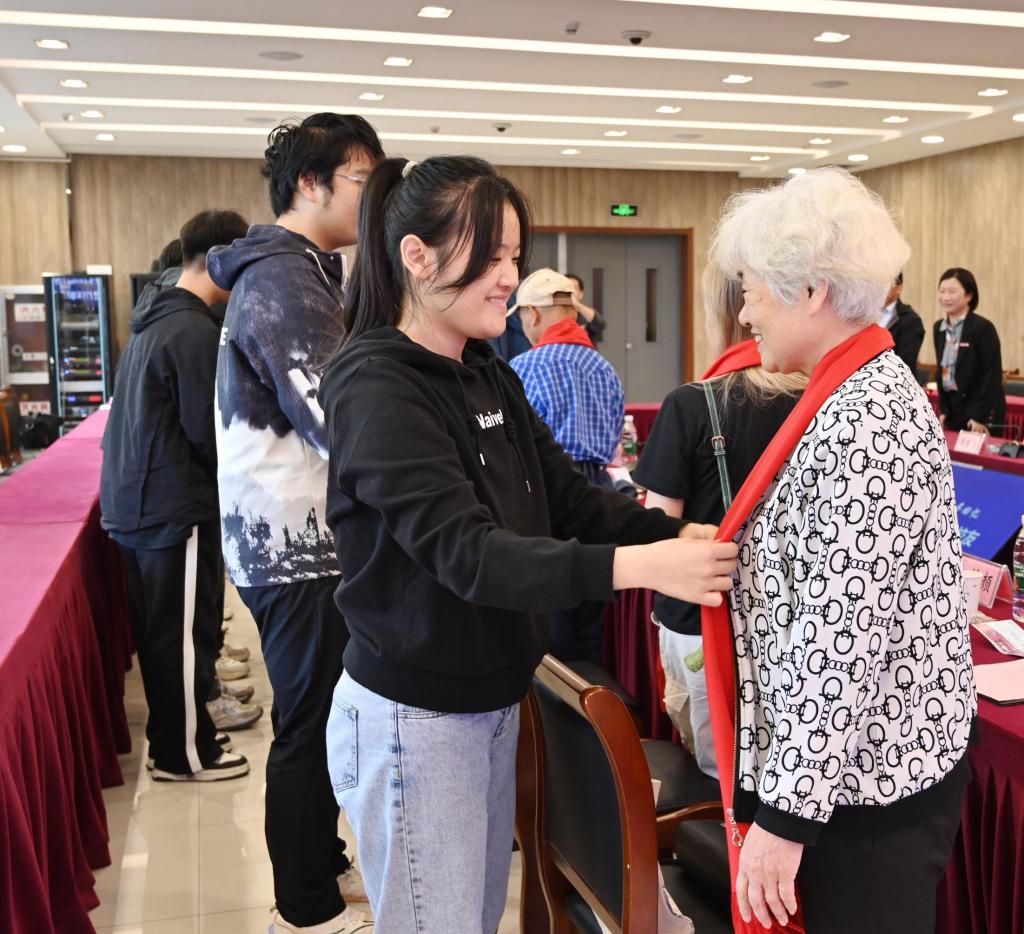 学院2024级新生代表满怀崇敬之情为前辈们献上红围巾,完成了一次跨越50年的“时代见面”,开启了一段穿越半世纪的“安理传承”。