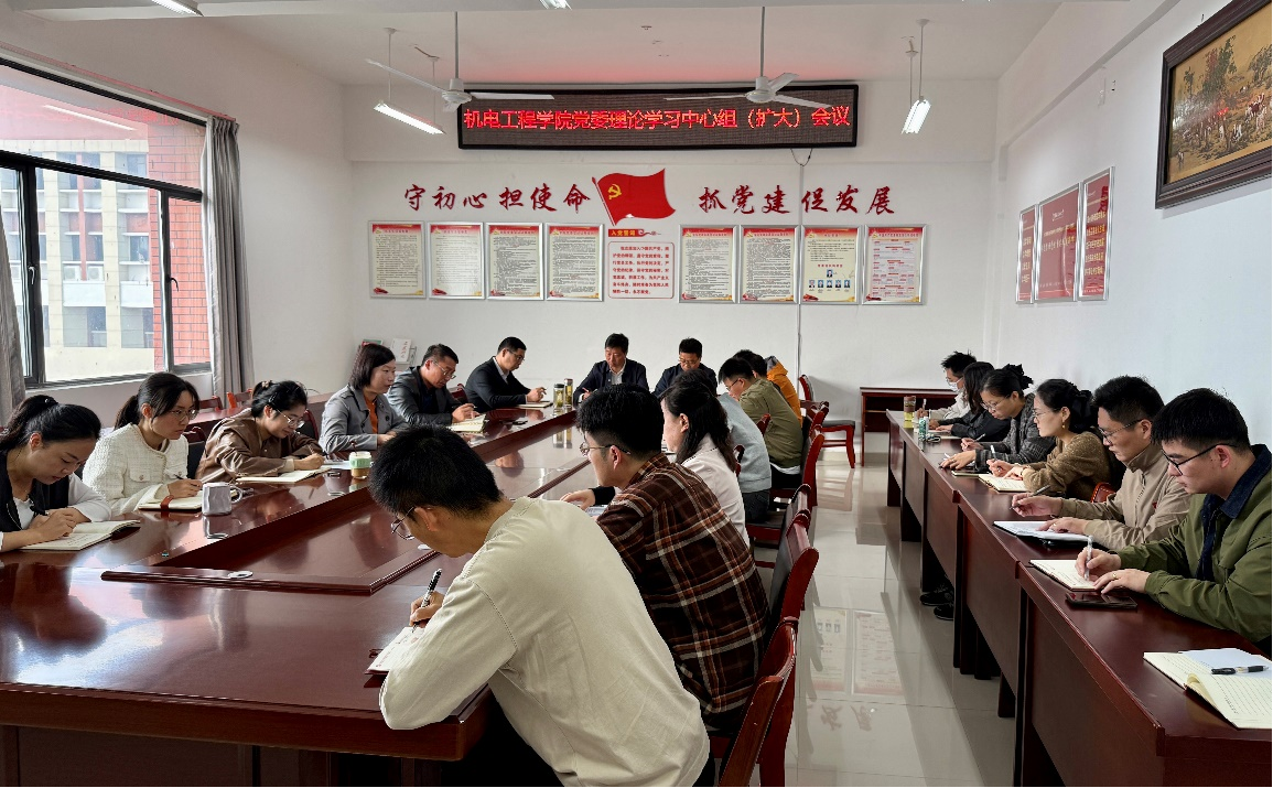 10月28日,机电工程学院在励学楼A433会议室召开学院党委理论学习中心组(扩大)学习会,专题传达学习习近平总书记考察安徽重要讲话精神。会议由学院党委书记张岚主持。