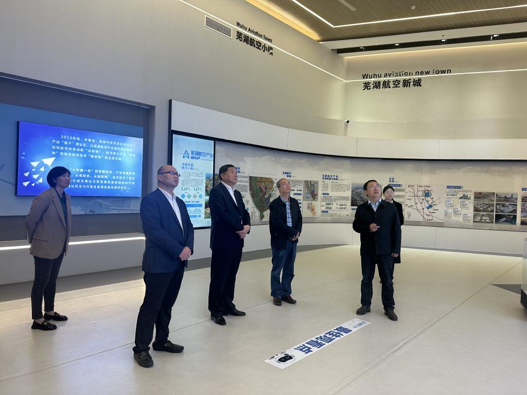 16日,考察组一行在湾沚区区委常委、常务副区长徐江宝的陪同下,参观了安徽航空小镇展厅、中电科芜湖钻石飞机制造有限公司和航瑞航空动力装备有限公司。在中电科芜湖钻石飞机制造有限公司车间,考察组一行参观了现代化的飞机生产线,与企业工程师进行深入对话,共同探讨航空科技的未来趋势与湾沚区航空产业集群的发展蓝图;在安徽航瑞航空动力装备有限公司,董事长朱航介绍了当前航空航天产业的发展形势、企业的发展现状、人才需求情况,双方就航空产业在碳中和目标下的转型升级路径与合作方向进行深入探讨。