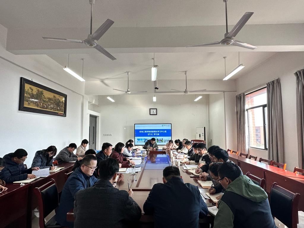11月26日,机电工程学院在学院A433会议室召开党委理论学习中心组(扩大)会议,专题学习省委十一届八次全会精神。学校2024年基层党组织理论学习中心组学习列席旁听第八工作组,人工智能学院党委书记张旸一行到会旁听指导。学院党委委员、全体党支部书记20余人参加会议。会议由学院党委书记张岚主持。