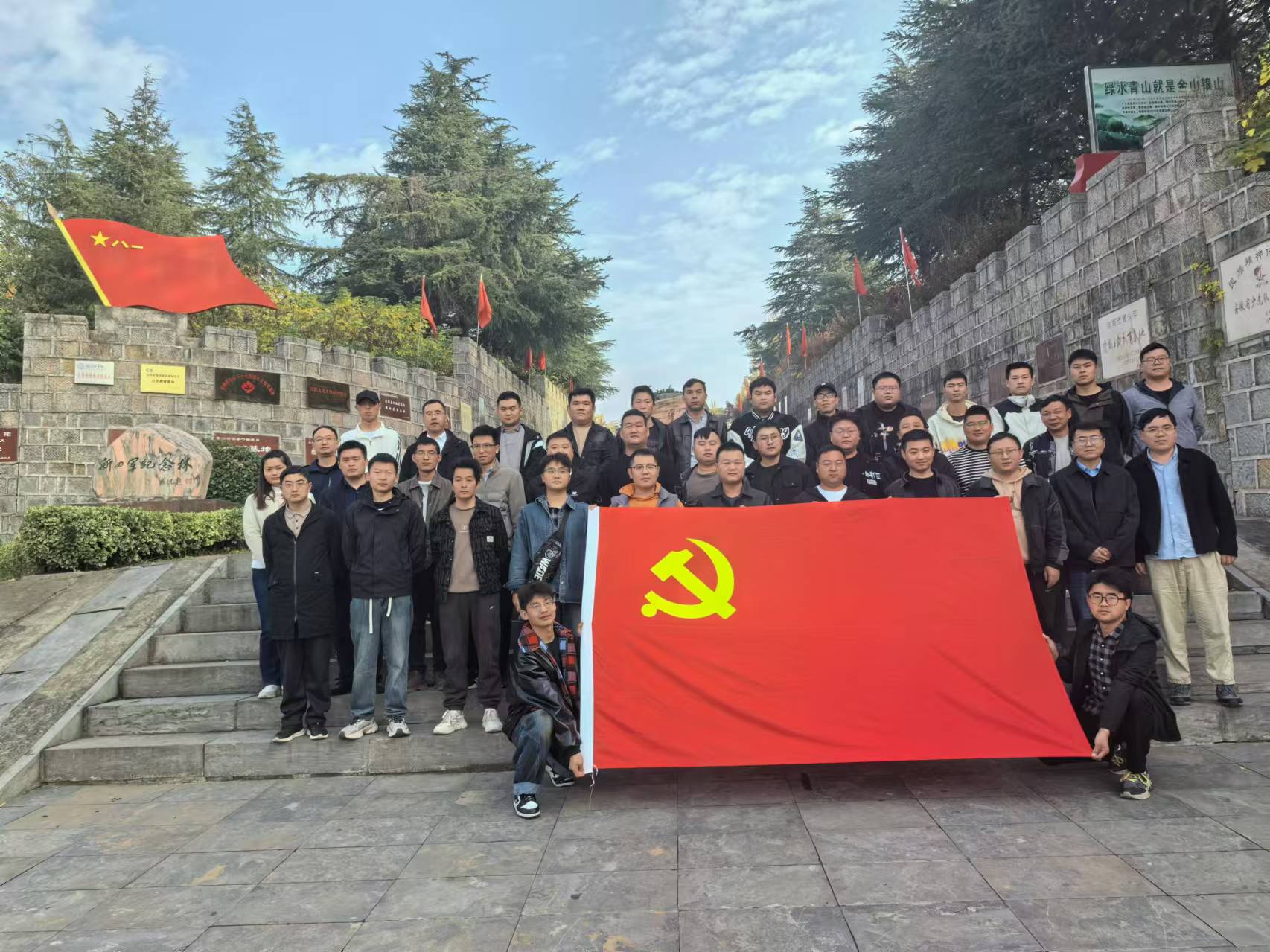 随后,一行人来到新四军纪念林,参观了解新四军的成长和发展壮大的光辉历程。纪念林寄托着百万淮南同胞对新四军的敬仰,林中的1000多棵银杏和苍松翠柏,宛如一部鲜活的抗日斗争史诗在露天的爱国主义教育大课堂惟妙惟肖地展现,大家纷纷感叹:革命先烈永垂不朽,新四军精神万古长青,新四军的丰功伟绩永垂不朽、万古流芳。