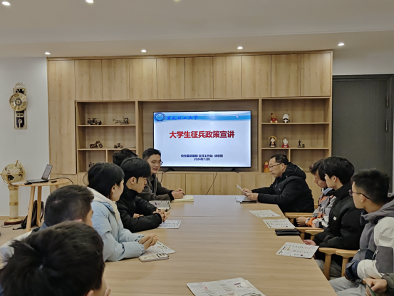 为加强大学生对入伍政策的理解,进一步激发广大青年学生爱国热情,鼓励他们积极投身国防事业,12月15日下午,机电工程学院在励学楼“一站式”学生社区举办大学生征兵政策宣讲会。校武装部徐意刚老师应邀为学院2021、2022级学生作征兵动员和入伍政策解析。机电工程学院学工负责同志、学院征兵工作联系人,两年级学生代表40余人参加会议。