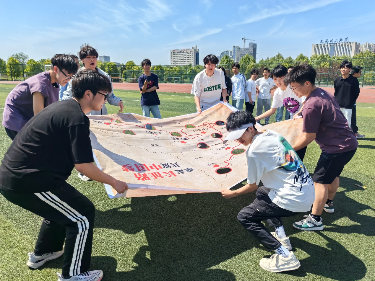 学生以团队为单位组成“长征小分队”。“长征地图”模拟了红军长征路线,标注了重要战役。路线两旁的圆洞则代表了长征途中各种困难。同学们团队协作使网球沿指定路线滚动,跨过一系列艰难险阻,最终胜利会师。活动让同学们直观感受到长征的艰辛,弘扬了伟大长征精神。