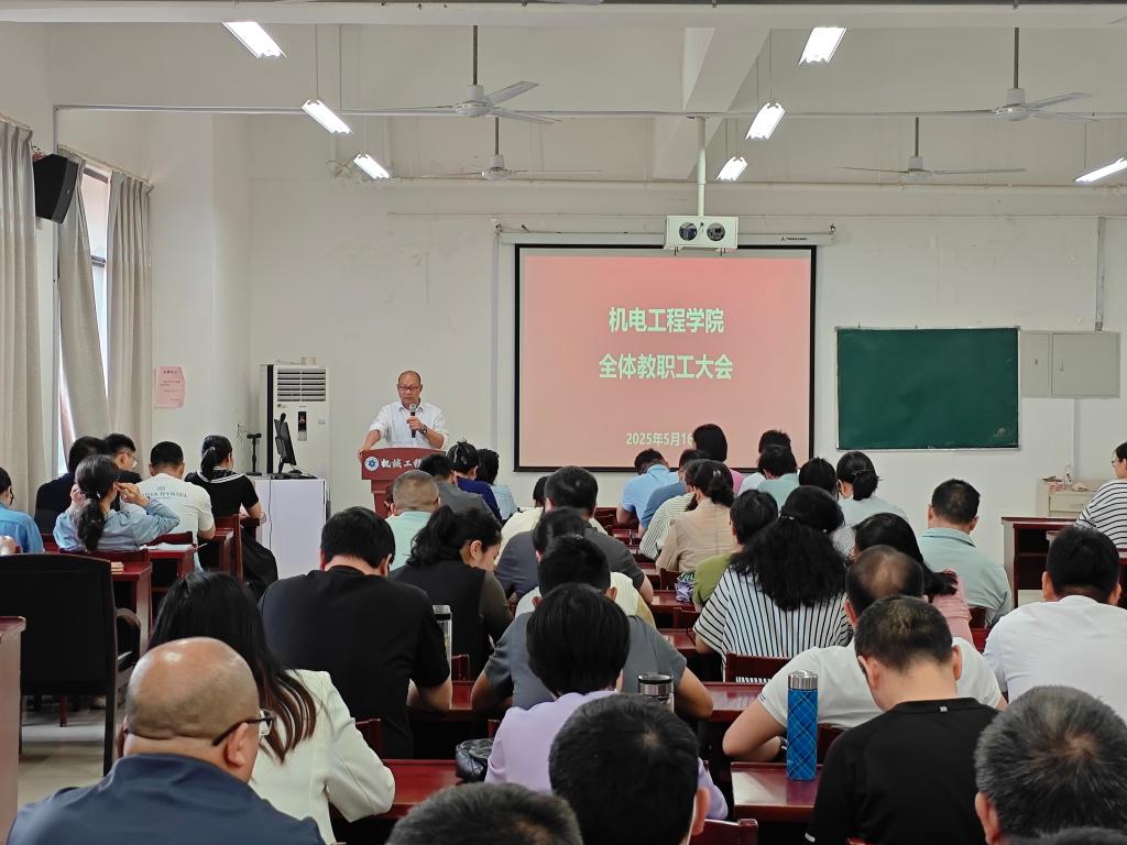 为统筹推进学院近期重点工作,凝聚教职工干事创业合力,5月16日下午,机电工程学院在B403报告厅召开全院教职工大会。学院领导班子及全体教职工参加会议。