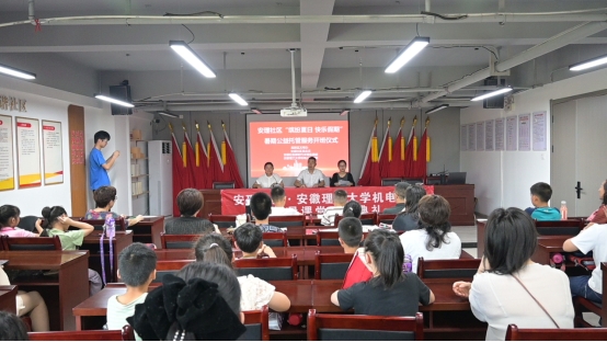 7月1日上午,机电工程学院“虹暑”课堂暑期公益支教活动在安理社区党群服务中心正式启动。学院辅导员张梦娣带领26名大学生志愿者,与社区党支部书记胡茂仕及26名小学生、家长共同参加了开学典礼。