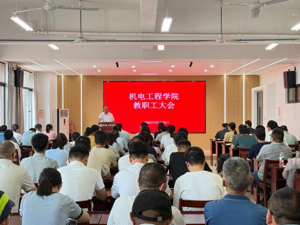 7月2日上午,机电工程学院在学院B403报告厅召开全体教职工大会,总结2025年上半年工作,部署下半年主要工作。会议由学院党委书记张岚主持。