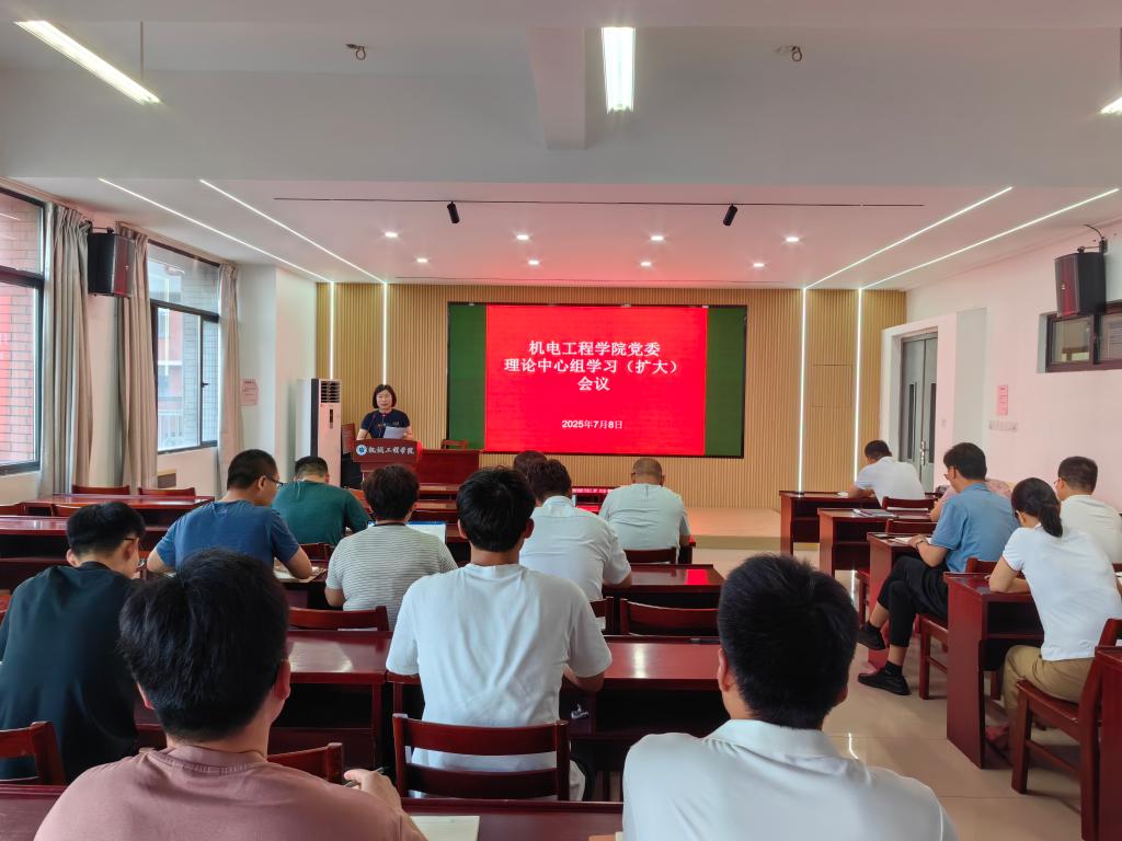 7月8日下午,机电工程学院在学院B403会议室召开党委理论学习中心组学习(扩大)会议。学院党政领导班子成员、纪委委员、全体党支部书记参加学习,会议由学院党委书记张岚主持。