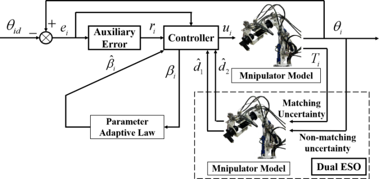 机械臂是重载作业场景(如煤炭开采、工程作业)的核心装备,其多自由度运动控制精度直接决定作业效率与安全性。液压机械臂突出存在建模误差、外部扰动及结构非线性等问题,传统控制方法难以满足高精度跟踪需求。沈刚教授团队在该论文中,提出一种基于抗扰的自适应控制技术,通过设计双扩张状态观测器精准估计并补偿外部扰动,结合自适应算法优化控制器参数,有效解决了多自由度液压机械臂的高精度控制难题,为多自由度液压机械臂高精度控制提供了新方案。
