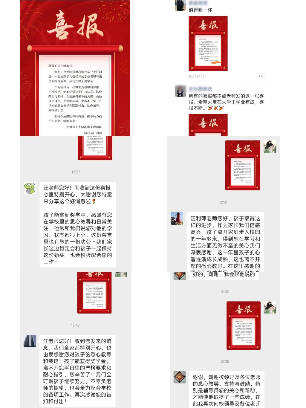 一纸喜报,承载着学生的荣光,也凝聚着家庭的期盼。近日,为表彰优秀、凝聚家校合力,机电工程学院“春暖花开”润心工作室为本学期获得奖学金的同学家长发送了一封专属电子喜报,将这份喜悦与荣耀第一时间传递给每个家庭的“幕后功臣”。