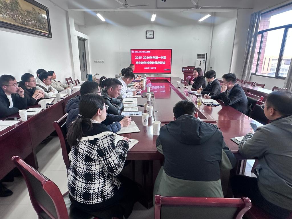11月27日下午,副校长饶莹教授出席机电工程学院2025-2026学年第一学期期中教学检查教师座谈会,听取学院一线教师对教育教学、教务管理、学生管理等方面的意见建议。