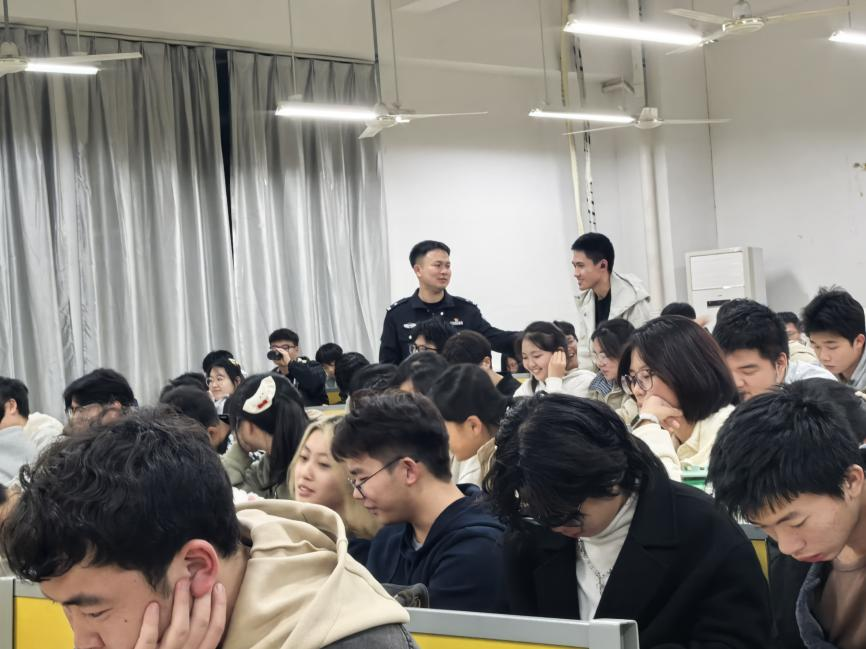 11月12日,学院反诈应激心理训练营在明理101顺利开营。淮南市公安局山南分局法制大队苏磊警官结合校园高发电信诈骗案例,带领同学们开展沉浸式反诈演练。利用真实场景模拟与“10秒黄金反射句”训练,强化了同学们的反诈应对能力,让警惕与拒绝成为本能。