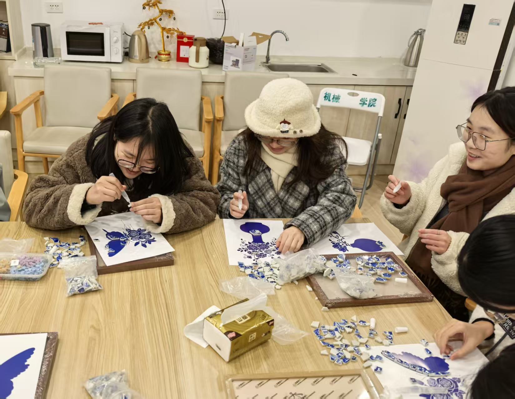 12月4日,学院在一站式学生社区举办“瓷韵绘心,非遗疗愈”心理团辅活动。同学们亲手拼贴青花瓷片,感受非遗之美,在创作中舒缓情绪、释放心理,提升了自我心理调适能力。