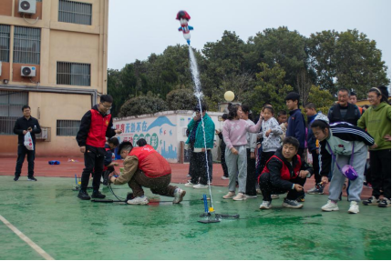 活动现场氛围温馨又热闹,团队精心策划了多项贴合儿童特点的趣味互动环节,用轻松的方式拉近与孩子们的距离。趣味拼图环节里,志愿者们耐心俯身引导,细心鼓励每一次勇敢尝试;创意黏土DIY环节里,志愿者手把手教学,耐心示范揉、捏、塑等基础手法,带领孩子们创作小动物、小花朵等可爱造型,鼓励孩子们大胆上台分享作品,帮助他们树立自信心。结合专业特色打造的创意水火箭游戏,更是成为全场最受欢迎的项目。志愿者们提前筹备环保安全材料,分组带领孩子们一步步组装、调试水火箭,全程一对一陪同发射与回收,用直观有趣的实践形式,让孩子们近距离感受科学的魅力。除此之外,团队还提前发起班级爱心募捐,用筹集的善款购置学习和生活必需品,把实实在在的关爱送到孩子们身边。