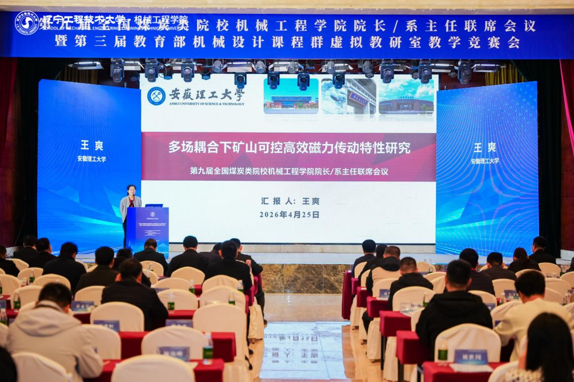 机电工程学院王爽副院长率学院教师代表出席本次会议。在4月25日上午的院长联席会议学术报告环节,王爽副院长应邀作了题为《可控混合式磁力耦合器传动特性研究》的学术报告。她结合我校机械工程学科在矿山机电装备及传动技术领域的最新研究进展,系统介绍了可控混合式磁力耦合器的结构原理、力学特性及工程应用前景,报告引发与会专家的广泛关注与热烈讨论。