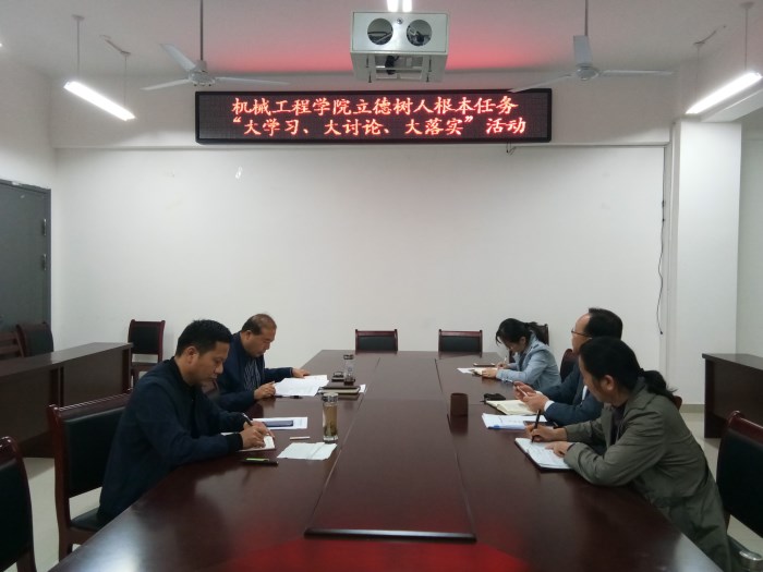 按照学校主题教育要求,在广大干部师生中广泛开展立德树人根本任务“大学习、大讨论、大落实”活动,机械工程学院积极贯彻落实上级精神, 在个人自学的基础上,10月29日晚,学院党委班子成员在励学楼A402会议室,专题开展“大学习”活动,并进行集中研讨。