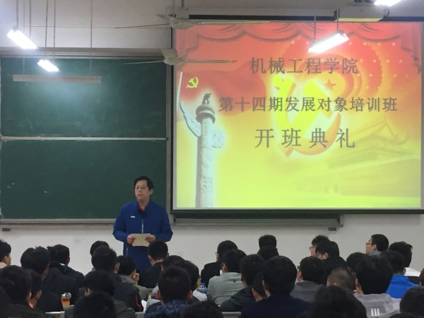 10月14日,机械工程学院分党校在明理北112教室举行第十四期发展对象培训班开班典礼。学院党委副书记徐育军、培训班班主任、辅导员和党校学员共同参加了典礼。