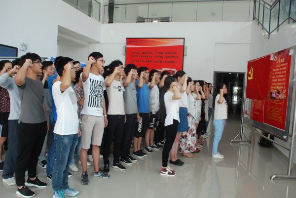 6月20日下午,机械工程学院2017届毕业生党员在励学楼一楼大厅重温入党誓词,学院党委副书记徐育军、毕业班辅导员和全体2017届毕业生党员参加。
