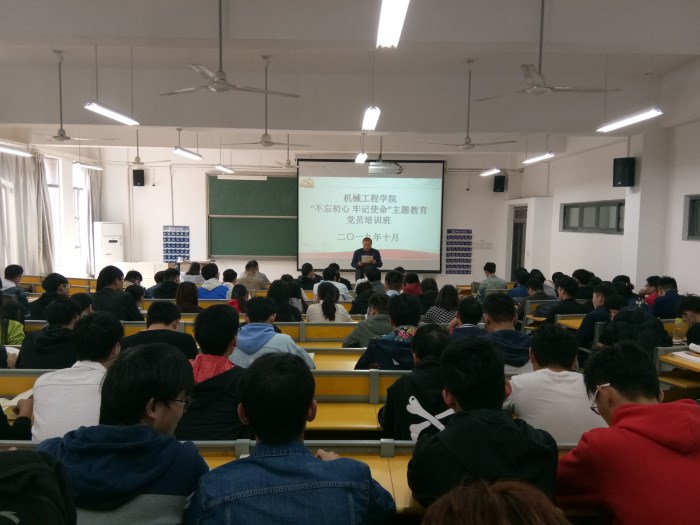 10月30日下午,机械工程学院在天工北314教室举行“不忘初心、牢记使命”主题教育培训班开班仪式。开班式由学院党委副书记程秀霞主持,学院党政领导班子、全体党员参加了开班式。