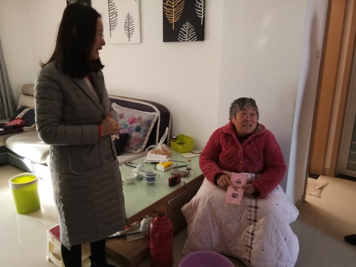 程秀霞一行在社区工作人员的带领下,先后慰问了四户贫困家庭。这些家庭均是家人身患残疾、或有精神疾病,给家庭造成了严重的经济负担,也让家庭成员承受着巨大的心理压力。程秀霞一行与贫困家庭亲切交谈,仔细地询问了他们的生活状况、收入来源等,为每户家庭送去了食用油、牛奶等慰问品和慰问金,向他们宣传了国家的相关帮扶政策,鼓励他们积极面对生活,树立信心,克服困难。