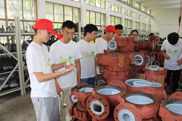 安徽卧龙泵阀股份有限公司对服务团的到来表示热烈欢迎,公司董事长吴玉林亲切接待了服务团全体成员。双方在公司第会议室进行了交流、座谈。张安宁首先介绍了此次到公司开展社会实践活动的目的和意义,并对公司为大学生提供这次宝贵的学习机会表示感谢。吴玉林向服务团介绍了公司的基本情况,对公司成立30年来依靠科技创新开发出的四大系列衬氟磁力泵,三大系列衬氟离心泵的技术要点进行了详细讲解,就公司目前的重点研发项目进行了介绍,对公司安全高效生产与环保可持续发展的理念进行了阐述。