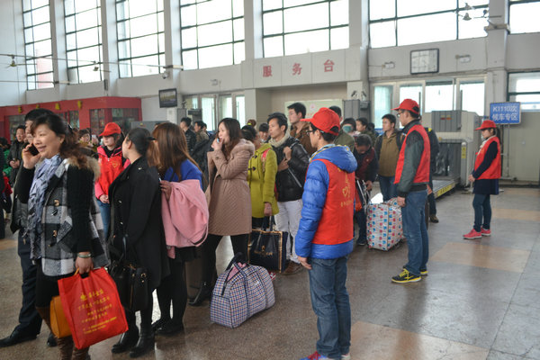 “小伙伴们,这几天淮南站客流激增,周末有想去帮忙服务的,抓紧报名喽”,这是3月13日过控14级2班团支书江玮琦在班级QQ群里发布的一条消息,班级同学积极响应,一支志愿服务队伍在3月14日来到了淮南火车站开始了忙碌而充实的一天。