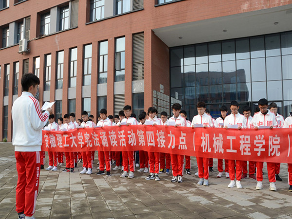 开展宪法诵读活动。学院团委积极响应校团委的号召,组织开展宪法诵读活动。12月2日,在励学楼前广场,来自学院各年级的60余名学生代表,整齐划一,精神饱满,以满腔热情高声诵读宪法内容,表达对宪法权威的坚决维护。