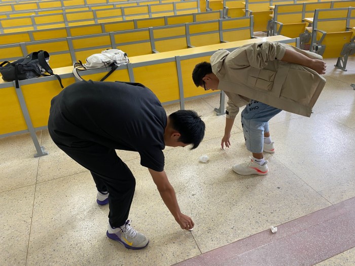 轮流清扫学校、学院公共区域。学院号召大一新生发扬不怕苦、不怕累的精神,扮演起校园“美容师”角色,拿起扫帚和簸箕,打扫周边卫生,捡起白色垃圾……同学们的劳动,换来了环境的“高颜值”,引得来往师生啧啧称赞。