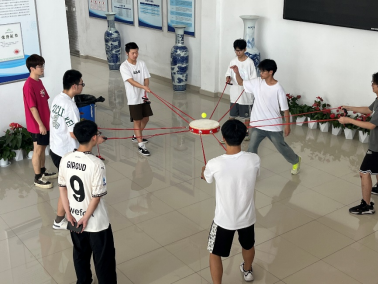 5月19日,学院面向全体学生开展“一‘心’运动,同创未来”心理趣味运动会。“合力搭搭”环节,每人控制两根绳子,合力拼搭积木。“同心击鼓”环节,每人控制一根绳子,相互配合共同操控同心鼓,颠起小球。以团结协作为主题的心理趣味运动会的举行,使同学们在游戏中体验合作共赢的乐趣,进一步提高了同学们的团队协作能力。