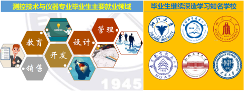 本专业毕业生大多就业于航天航空、兵器、机械、电子、医疗、能源、冶金、化工、通讯、交通等众多国防科技及国民经济建设领域的研究院所和企业,从事现代测控系统的研究设计、制造、应用工作。近三年累计就业率100%,考研率达到28%,向中国科学技术大学、浙江大学、四川大学、天津大学、重庆大学、厦门大学、合肥工业大学、南京航空航天大学等国内多所知名高校输送大量优秀毕业生继续深造。